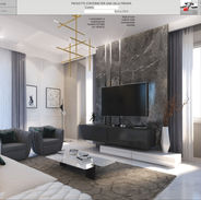 - Divisorio Living-Cucina composto da incastri di elementi in cartongesso che vanno a formare sia volumi puri, sia nicchie verticali illuminate da strip led che accolgono delle mensole in metallo